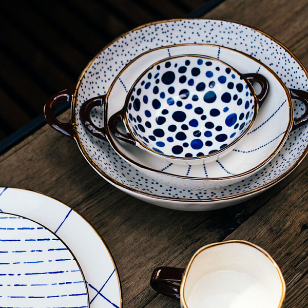 - Rialto – посуда в средиземноморском стиле светлой палитры с тонкой глазурью и ручной росписью.